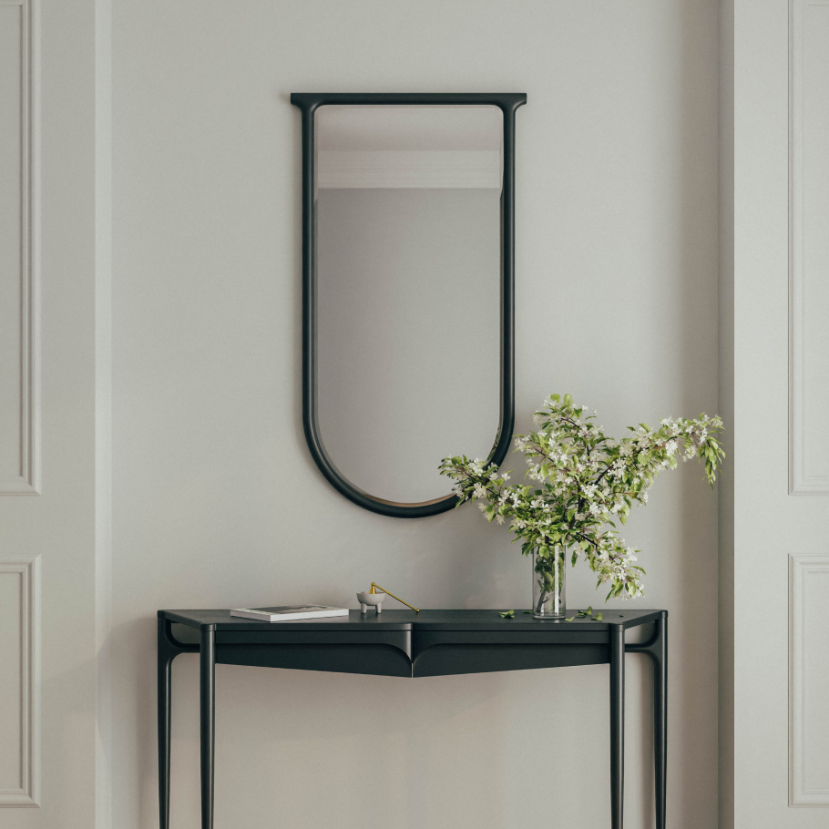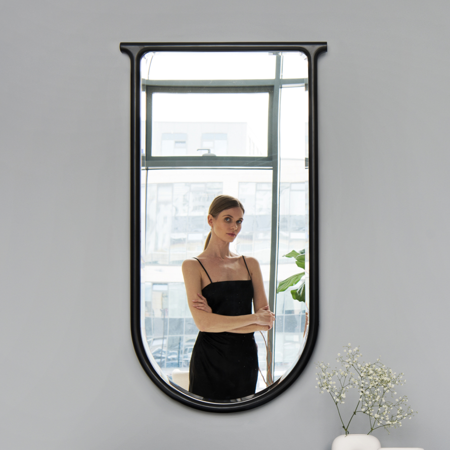 Предмет выполнен из влагостойкой фанеры. Зеркало с фацетом, уменьшает переотражение рамы в зеркале, тем самым визуально облегчая ее и создавая дополнительную игру света в пространстве.
