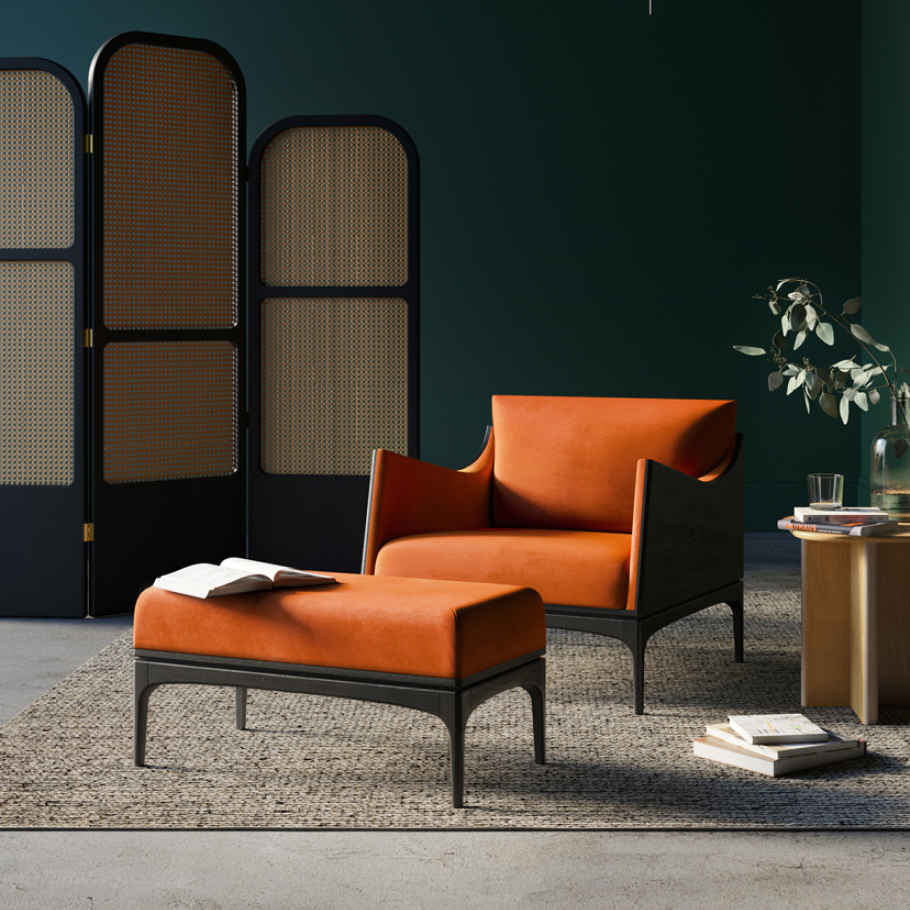 Банкетка может быть использована как идеальное дополнение к креслу из одноименной коллекции, так и как отдельно стоящий предмет. Утонченный каркас выполнен из массива ясеня, что делает его изящным и прочным одновременно. Заостренные ножки создают контраст с высокой подушкой. Мягкая основа имеет функцию памяти и подстраивается под форму тела, делая сидение особенно удобным. Использование совместно с креслом дает необходимый комфорт для отдыха с любимой книгой или с бокалом вина.