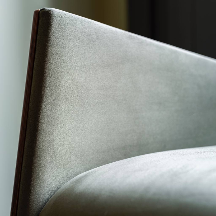 Утонченный каркас выполнен из массива ясеня, что делает его изящным и прочным одновременно. Заостренные ножки дополнительно контрастируют с мягкими и уютными подушками.