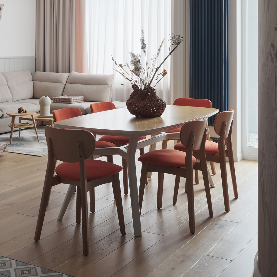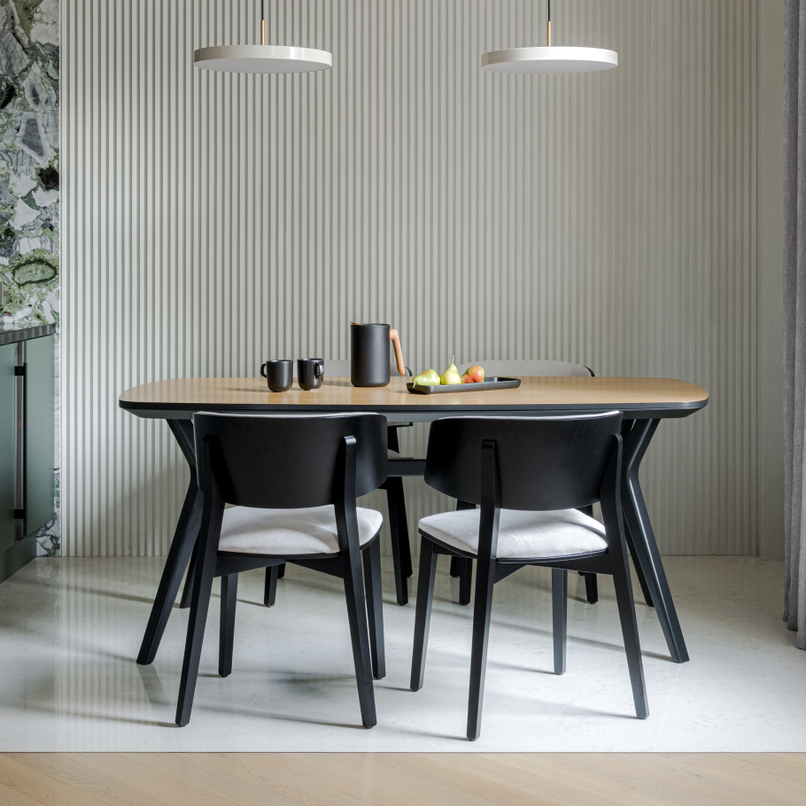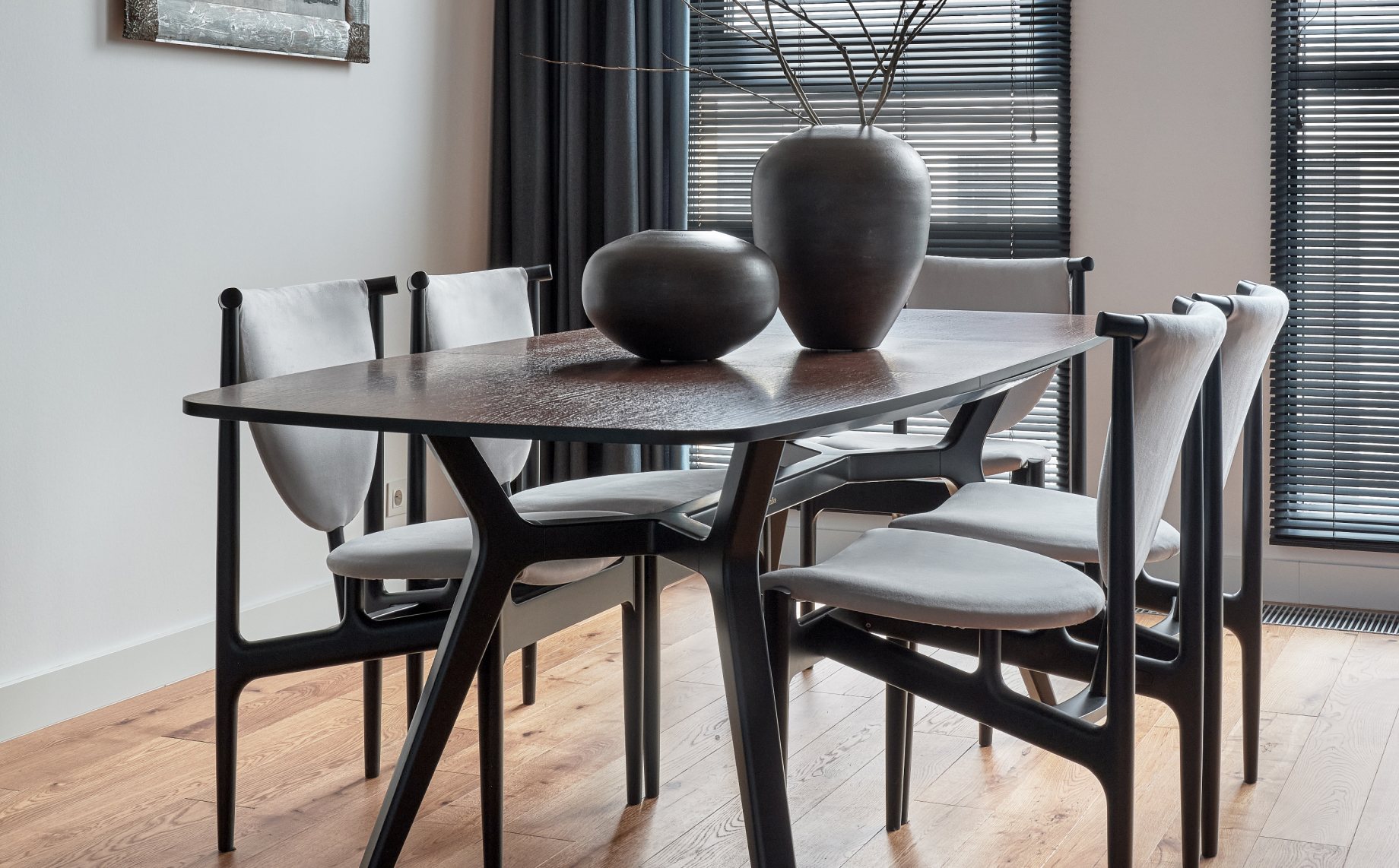 Johann – это интерпретация классической схемы каркаса в духе mid-century. Облегченный образ достигается за счет тончайшей столешницы со скошенными фасками и стремительного сужения опор. Плавные очертания столешницы смягчают силуэт и добавляют ему визуального гостеприимства.