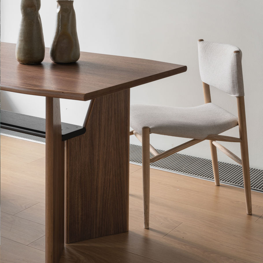 Форм-фактор стола сложился при решении задачи приблизиться к концепции Zero Waste при раскрое листового материала. Это позволило найти баланс между образом, отсылающим нас к японским воротам Torii, и рационального расхода ресурса. Все элементы стола раскраиваются на одном листе фанеры.
