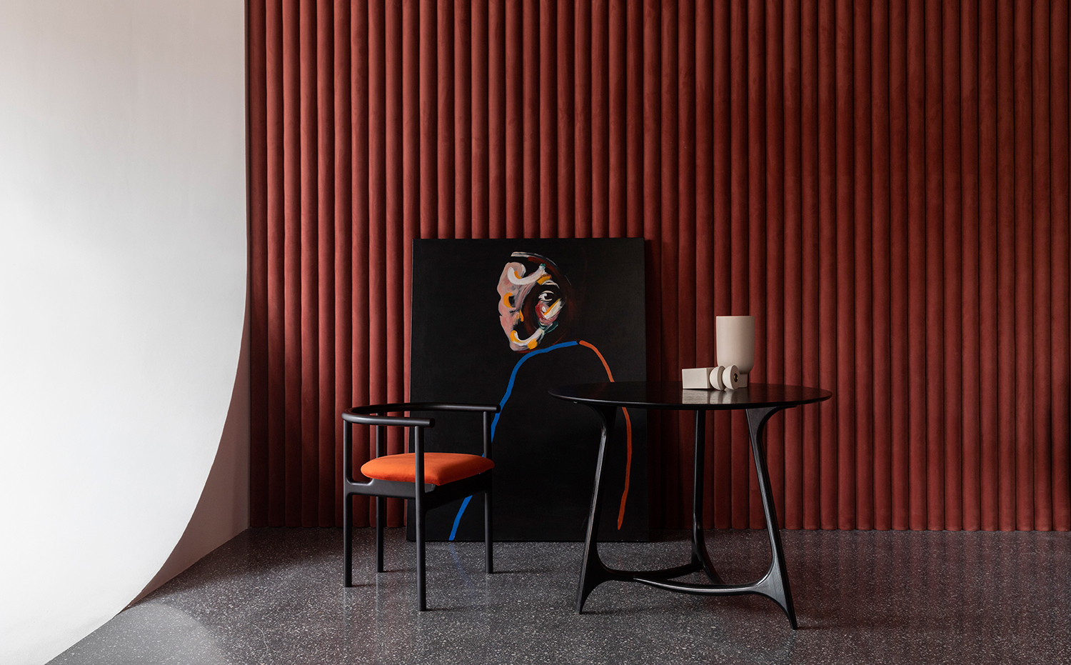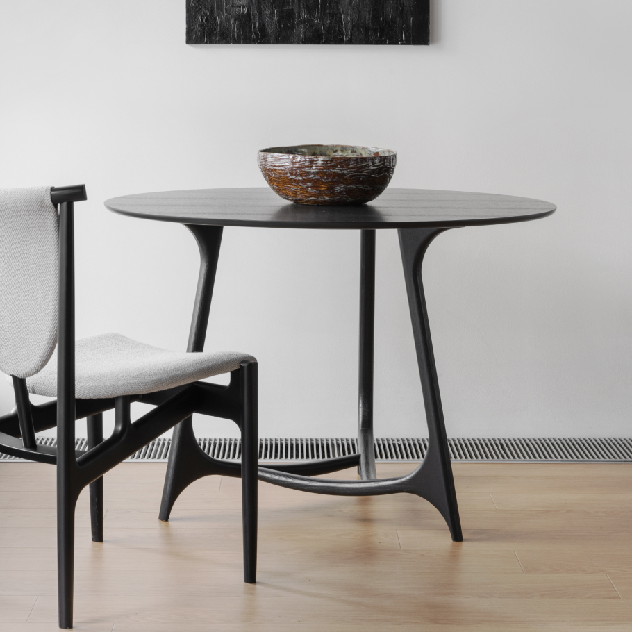 Прообразом стола Kyns (от финского слова Kynsi) стал коготь пантеры. В этом образе есть пластичность и изящество в сочетании с твердостью и уверенностью гордого хищника. Устойчивый треногий каркас стола позволяет сохранить легкость пространства, не перегружая его собой.