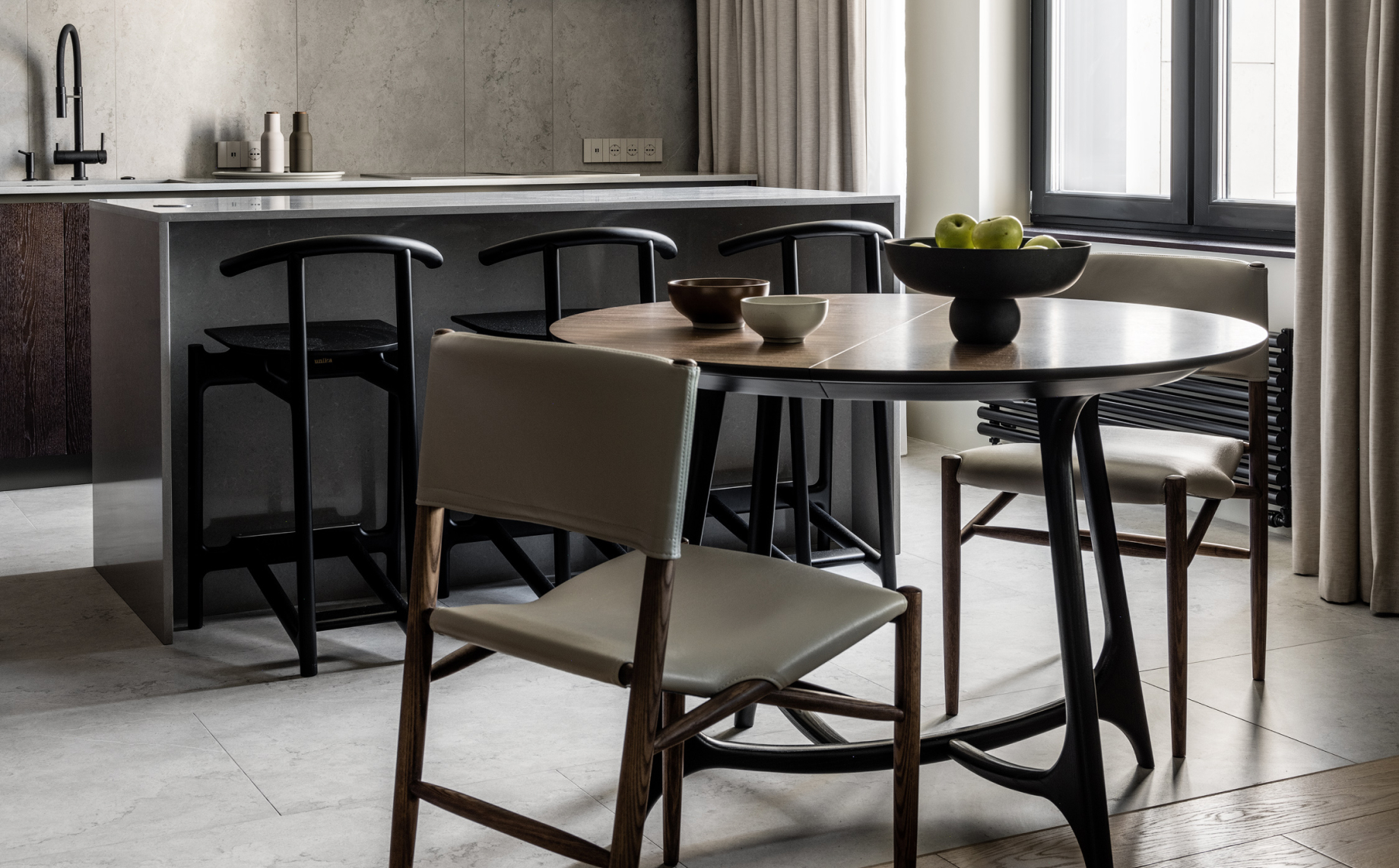 Прообразом раскладного стола Kyns стал коготь пантеры. В этом образе есть пластичность и изящество в сочетании с твердостью и уверенностью гордого хищника. Устойчивый каркас стола позволяет сохранить легкость пространства, не перегружая его собой.