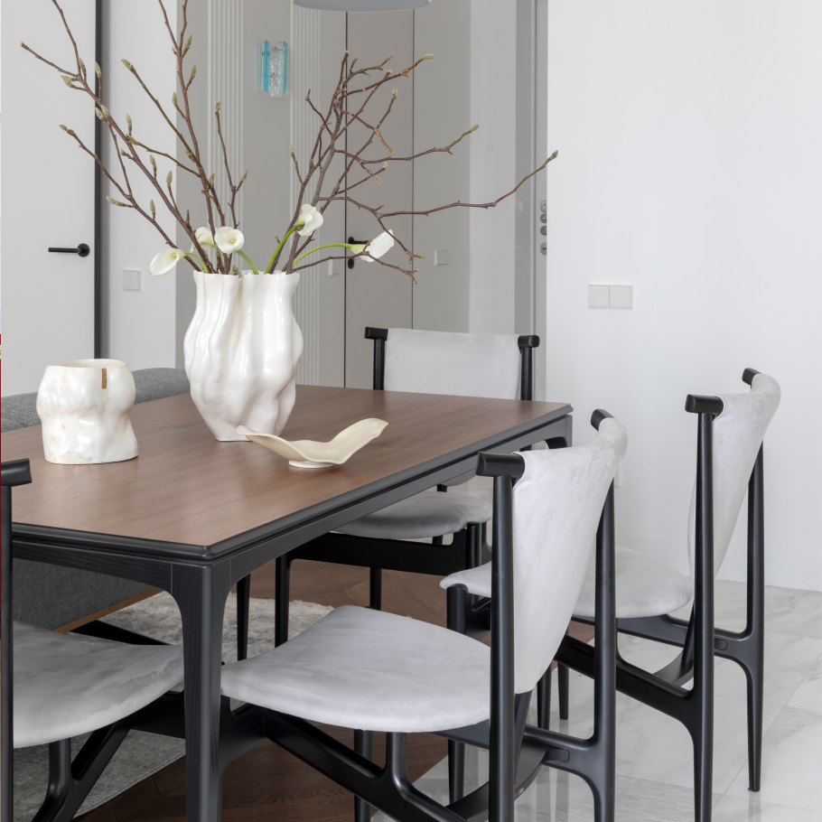 Обеденный стол Tynd – это одновременное изящество и надежность. В конструкции использован прием игры с воздухом: столешница словно парит над каркасом, приподнявшись на несколько миллиметров. Tynd удачно интегрируется в интерьеры различных стилей, но особенно выигрышно дополняет пространство в духе Mid-century, нео-классики и даже ар-нуво. Подобная утонченность, благодаря свойствам массива ясеня, обеспечивает высокую степень устойчивости конструкции. Теплоты и уюта добавляет натуральный шпон, которым покрыта столешница.